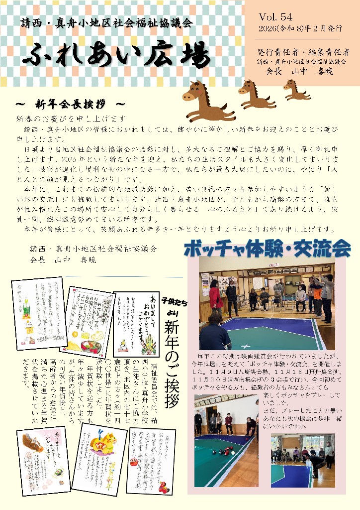 請西・真舟小地区社会福祉協議会広報紙「ふれあい広場」第54号が発行されました。