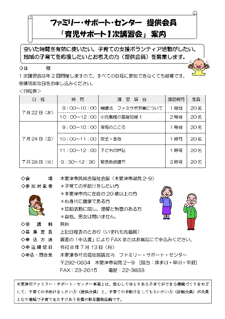 【ファミリー・サポート・センター】「育児サポート1次講習会」申込書